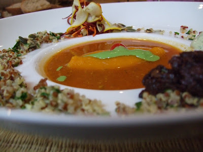 J’ai eu un gros faible pour le velouté en entrée et pour les graines germées de poireau qui accompagnaient le fromage de chèvre et les graines de courges et la tapenade et la crème de chèvre et…